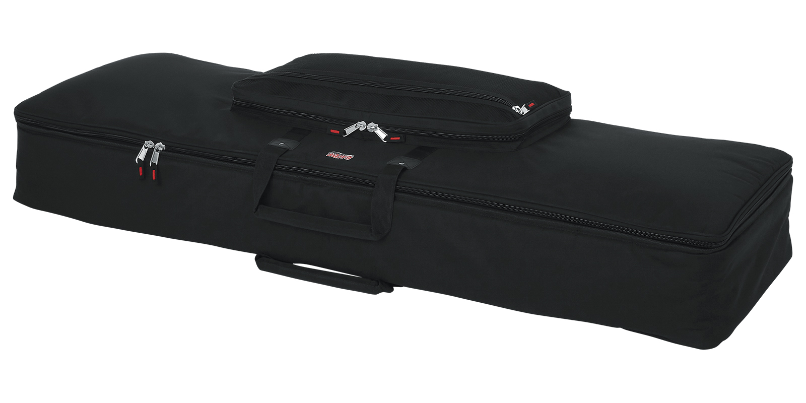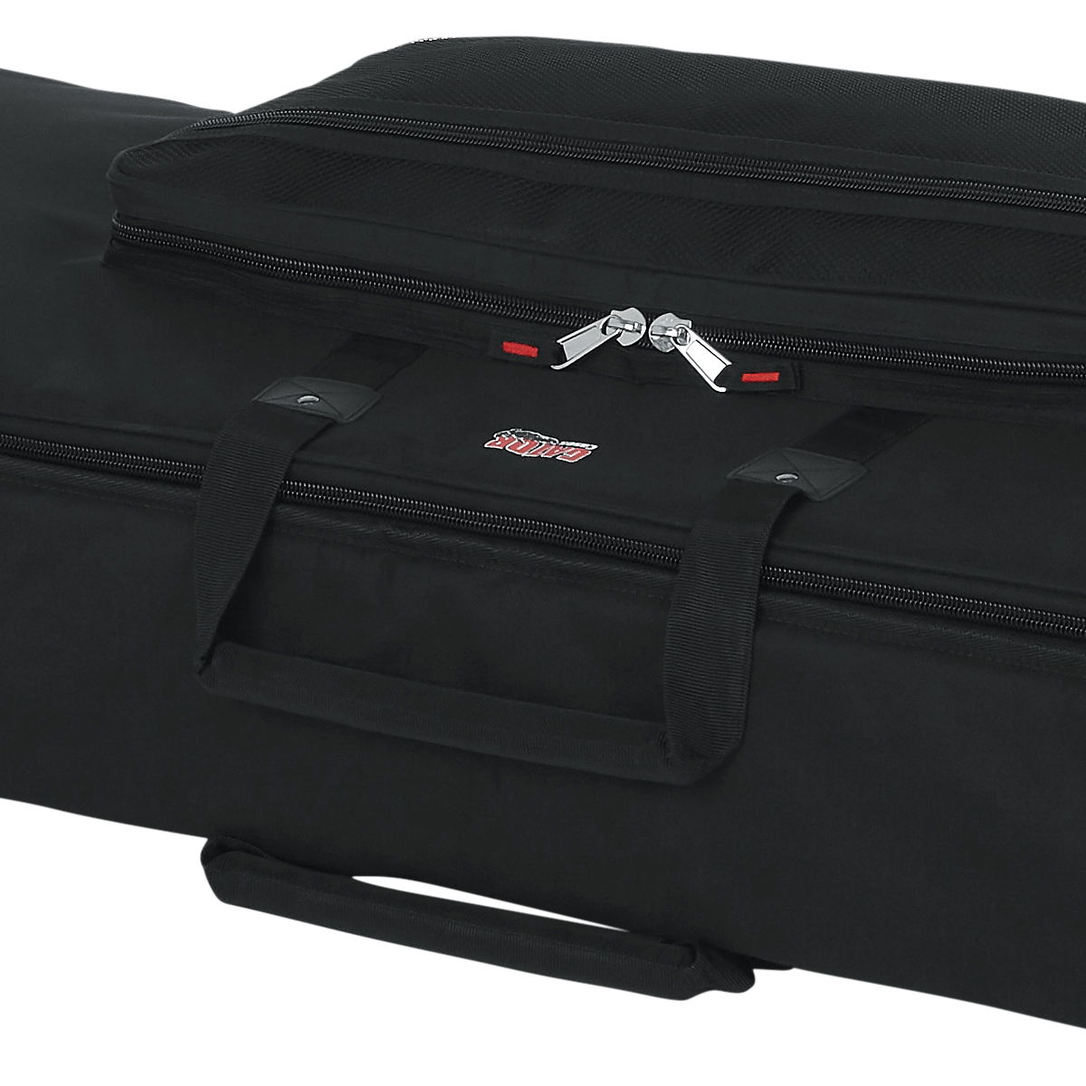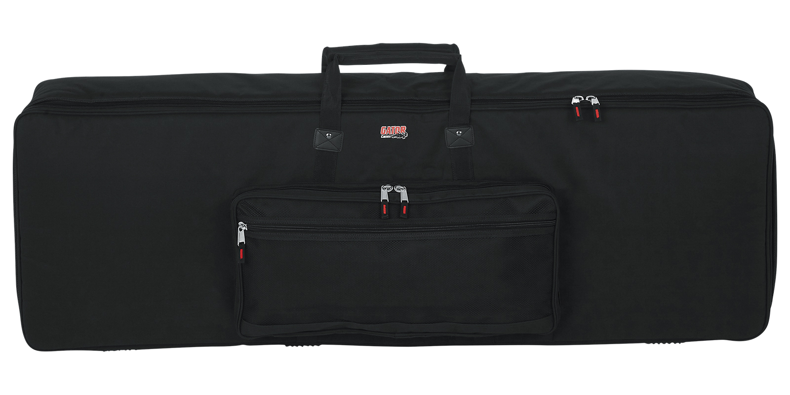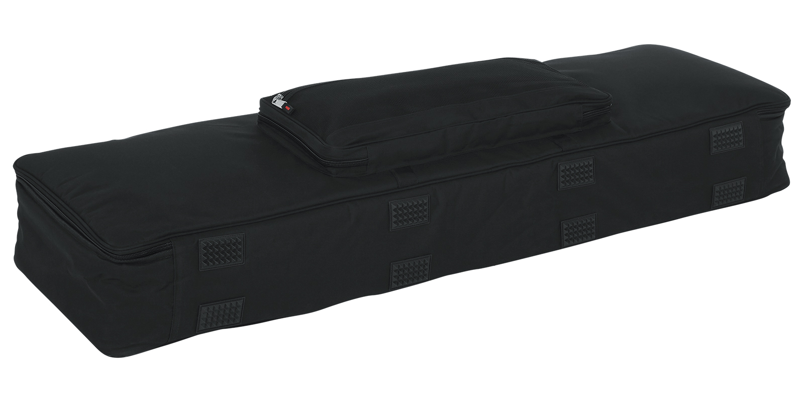 GKB-88 de Gator es una funda acolchada de nylon balístico Denier 600 de 20 mm que se adapta a teclados, stage pianos y sintetizadores de 88 teclas. Cuenta con resistentes correas ajustables para que el teclado se quede en su lugar durante el transporte, cuenta también con un gran bolsillo exterior para accesorios y asas reforzadas.