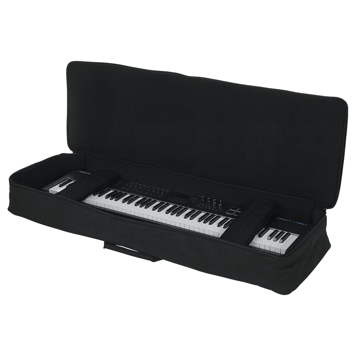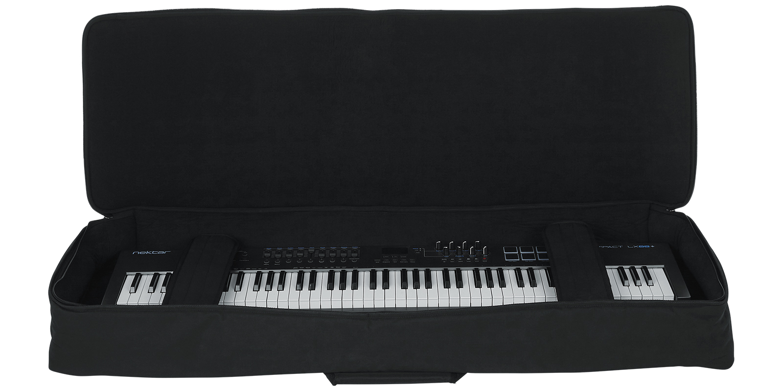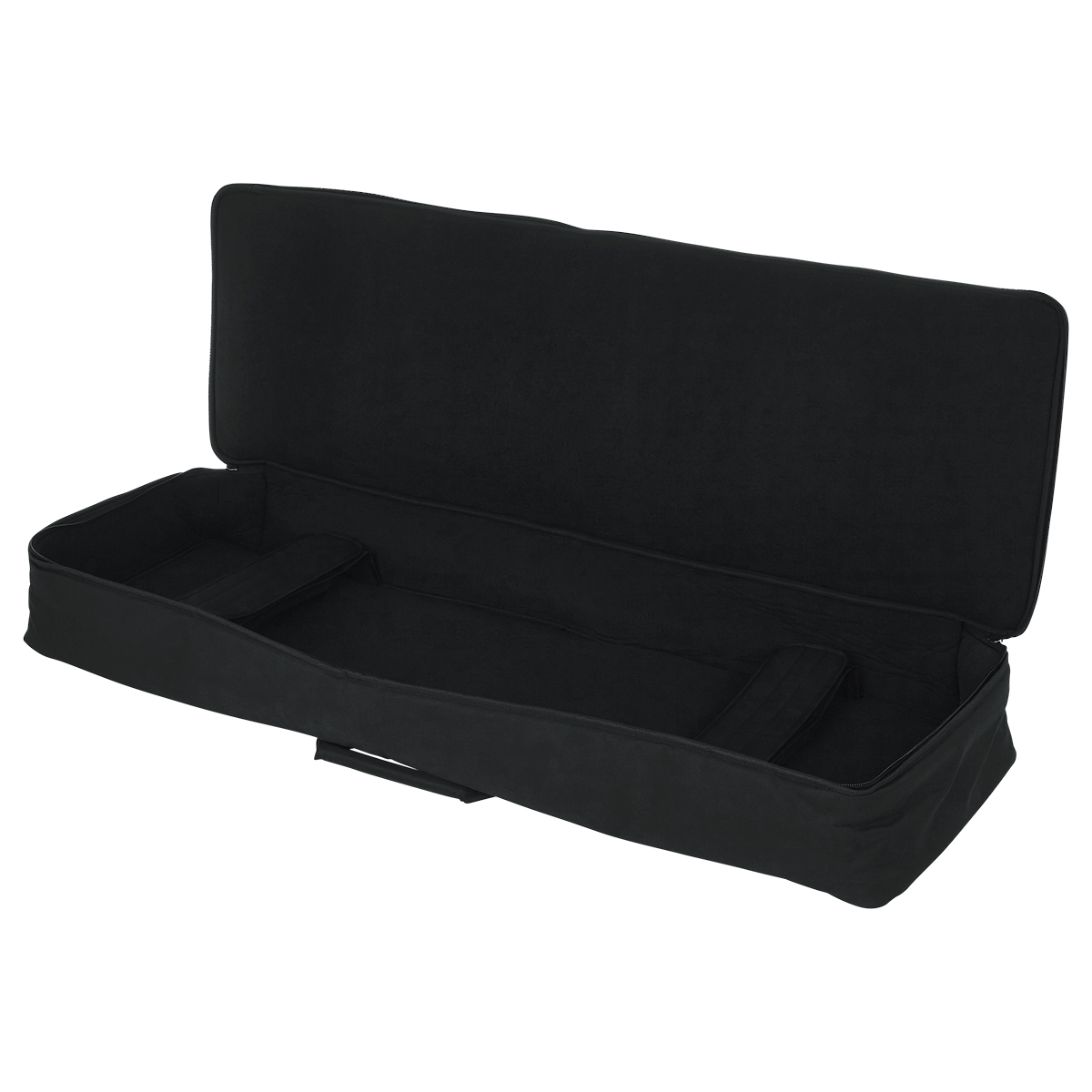 GKB-88 de Gator es una funda acolchada de nylon balístico Denier 600 de 20 mm que se adapta a teclados, stage pianos y sintetizadores de 88 teclas. Cuenta con resistentes correas ajustables para que el teclado se quede en su lugar durante el transporte, cuenta también con un gran bolsillo exterior para accesorios y asas reforzadas.