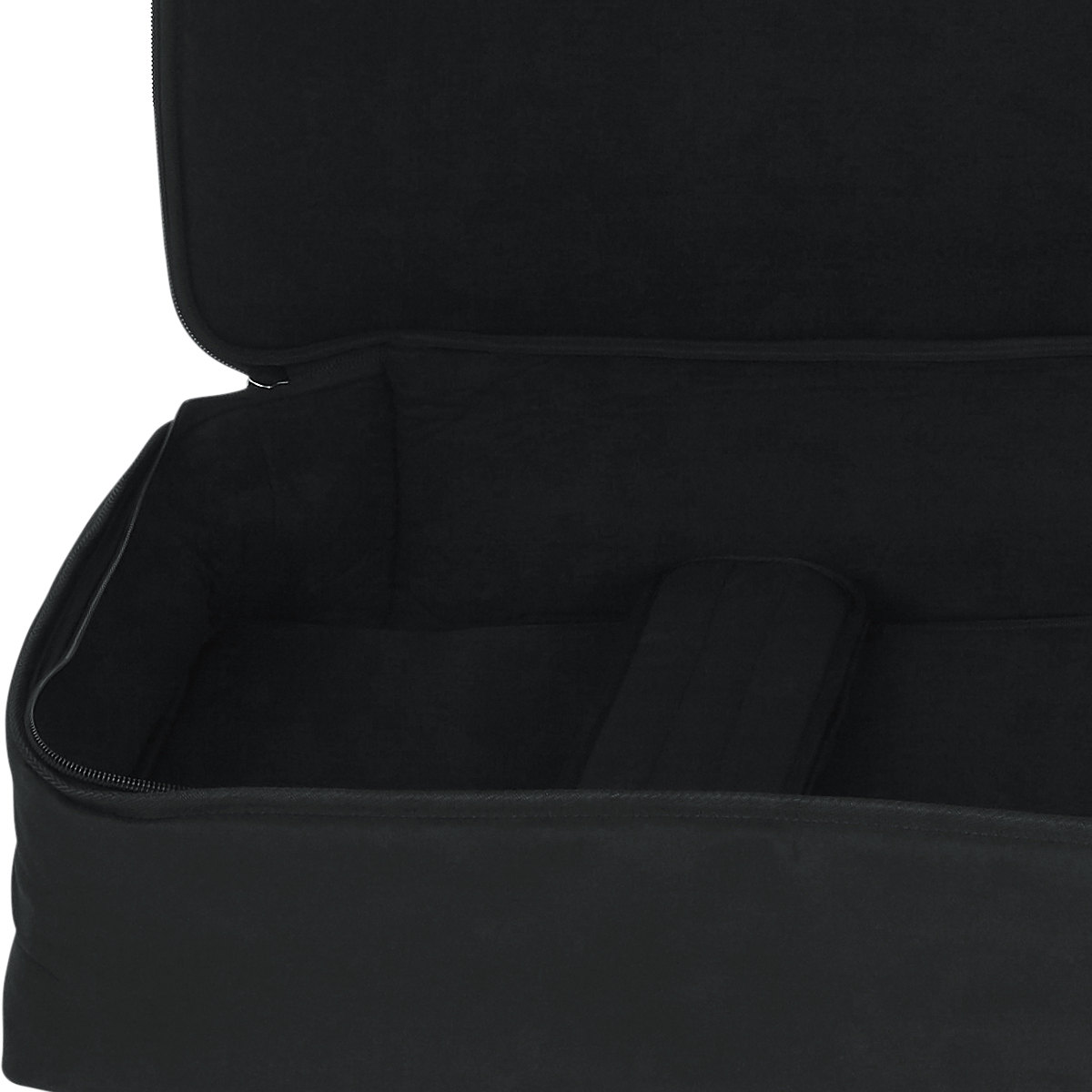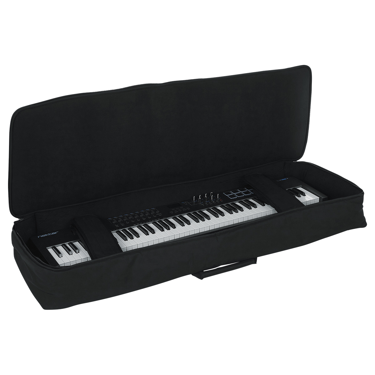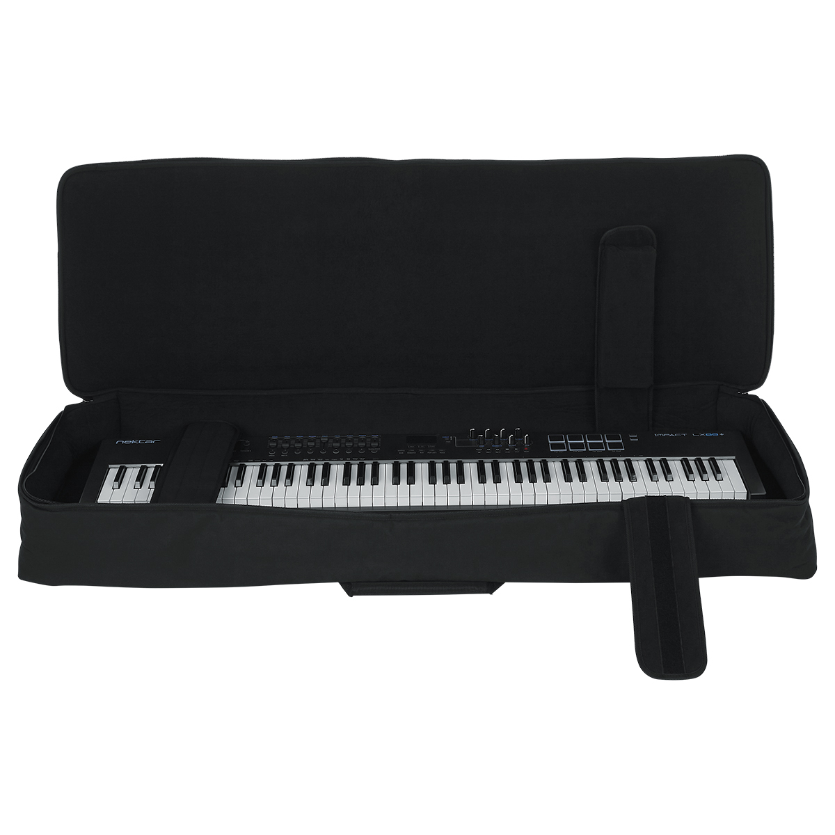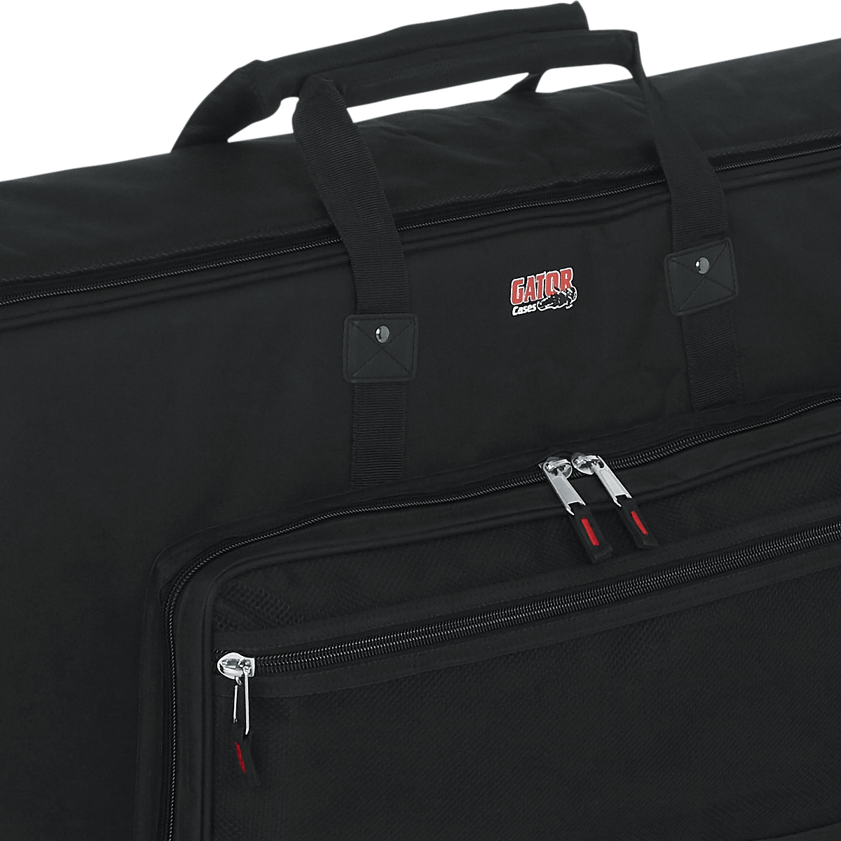 GKB-88 de Gator es una funda acolchada de nylon balístico Denier 600 de 20 mm que se adapta a teclados, stage pianos y sintetizadores de 88 teclas. Cuenta con resistentes correas ajustables para que el teclado se quede en su lugar durante el transporte, cuenta también con un gran bolsillo exterior para accesorios y asas reforzadas.