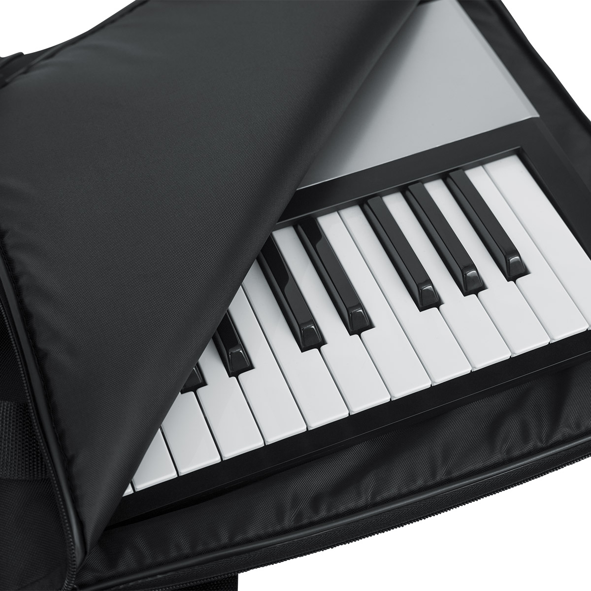 Gator presenta con orgullo la funda ligera de teclado GKBE-61 especialmente diseñada para teclados de 61 teclas. Esta robusta funda de nylon proporciona una barrera fuerte y protectora contra los temidos “asesinos de teclados” como la suciedad, el polvo, las salpicaduras, los derrames e incluso la humedad. El acolchado de 10 mm admite tu teclado durante el almacenamiento y el transporte dentro de esta funda simple de tipo sobre. Esta funda es lo suficientemente asequible para no dejarte con las manos vacías, simplemente agarra las manijas de Nylon Web y listo. También es lo suficientemente resistente como para llamarse Gator.