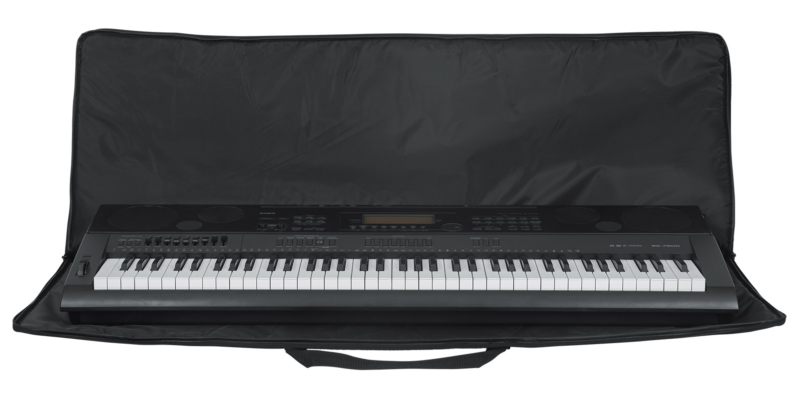 Funda ligera para teclado de 76 teclas, acolchado de 10 mm, bolsa simple estilo sobre para teclados portátiles de nivel básico, manijas de tela de nylon web. Dimensiones del producto: 8 x 54 x 64 cm. Peso: 1.05 Kg.