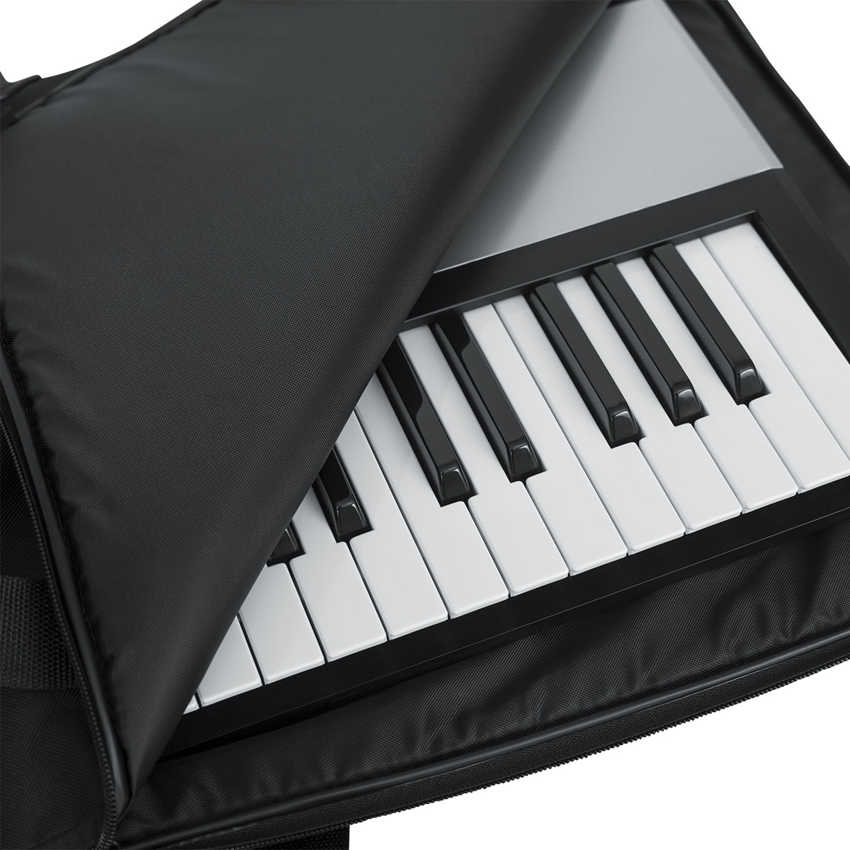 Gator presenta con orgullo la funda ligera de teclado GKBE-76 especialmente diseñada para teclados de 76 teclas. Esta robusta funda de nylon proporciona una barrera fuerte y protectora contra los temidos “asesinos de teclados” como la suciedad, el polvo, las salpicaduras, los derrames e incluso la humedad. El acolchado de 10 mm admite tu teclado durante el almacenamiento y el transporte dentro de esta funda simple de tipo sobre. Esta funda es lo suficientemente asequible para no dejarte con las manos vacías, simplemente agarra las manijas de Nylon Web y listo. También es lo suficientemente resistente como para llamarse Gator.