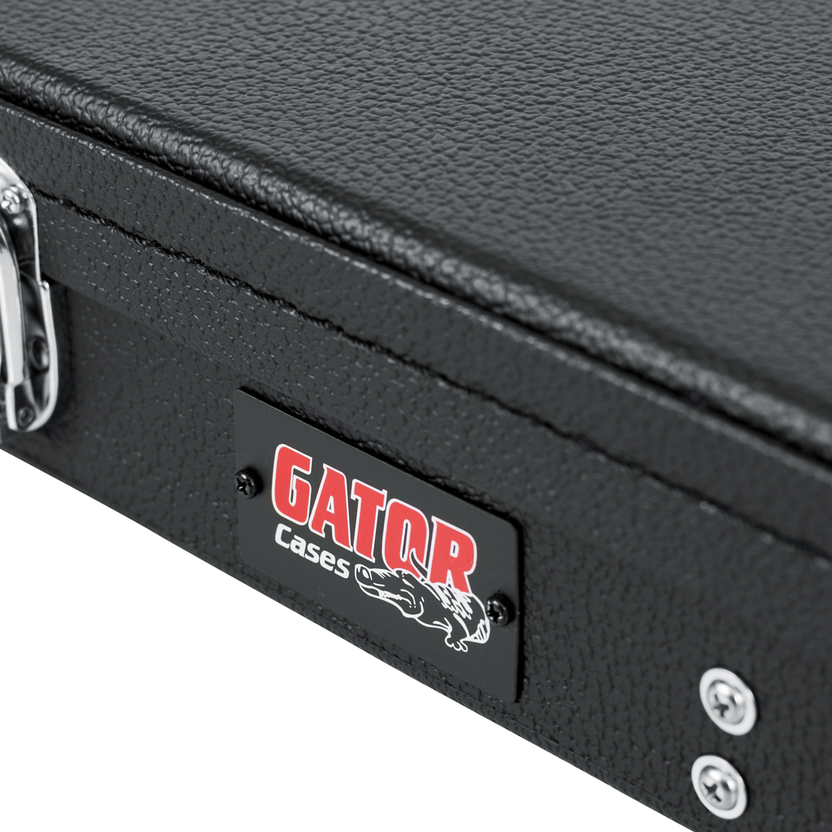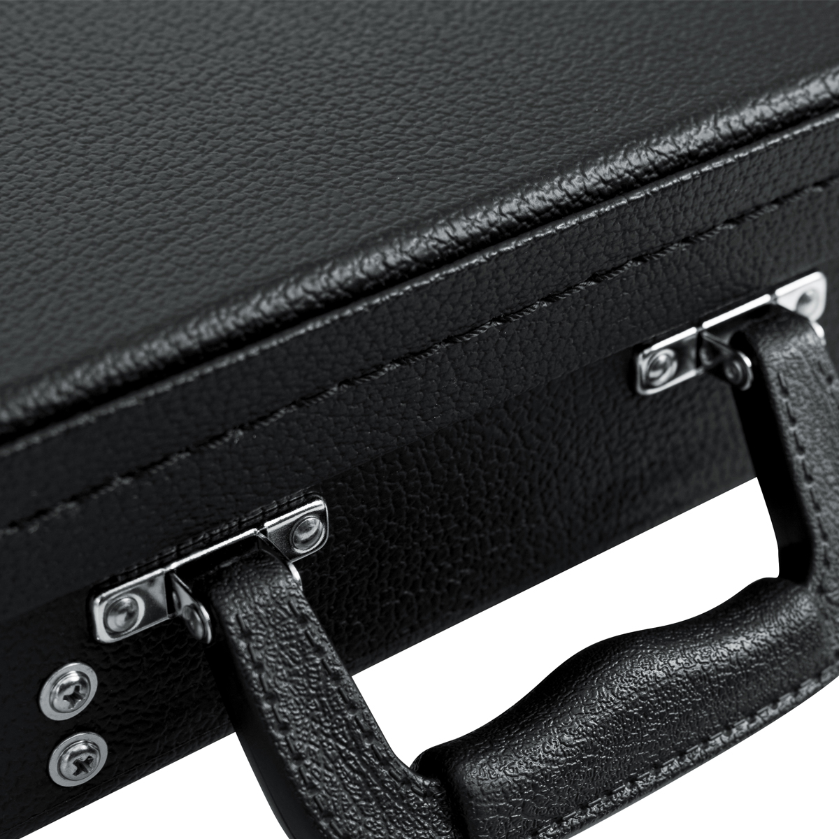 El estuche de madera de carcasa dura GWE ELEC es ideal para guitarras eléctricas estándar, es liviano, ultra delgado y está diseñado para proteger tu instrumento contra golpes y magulladuras menores del uso diario. La madera contrachapada duradera recubierta de PVC Tolex negro forma una barrera exterior resistente a la humedad y a los impactos, mientras que el forro de felpa mantiene tu guitarra cómoda. El gran compartimento interior de almacenamiento se adapta a todo, desde tahalíes y afinadores hasta púas y capos. Los cerrojos cromados forman un recinto seguro y el asa ergonómica de transporte equilibra perfectamente el peso del estuche y le da un agarre cómodo a tu equipo. Mantén tu guitarra sana y salva con este gran estuche de madera rígida.