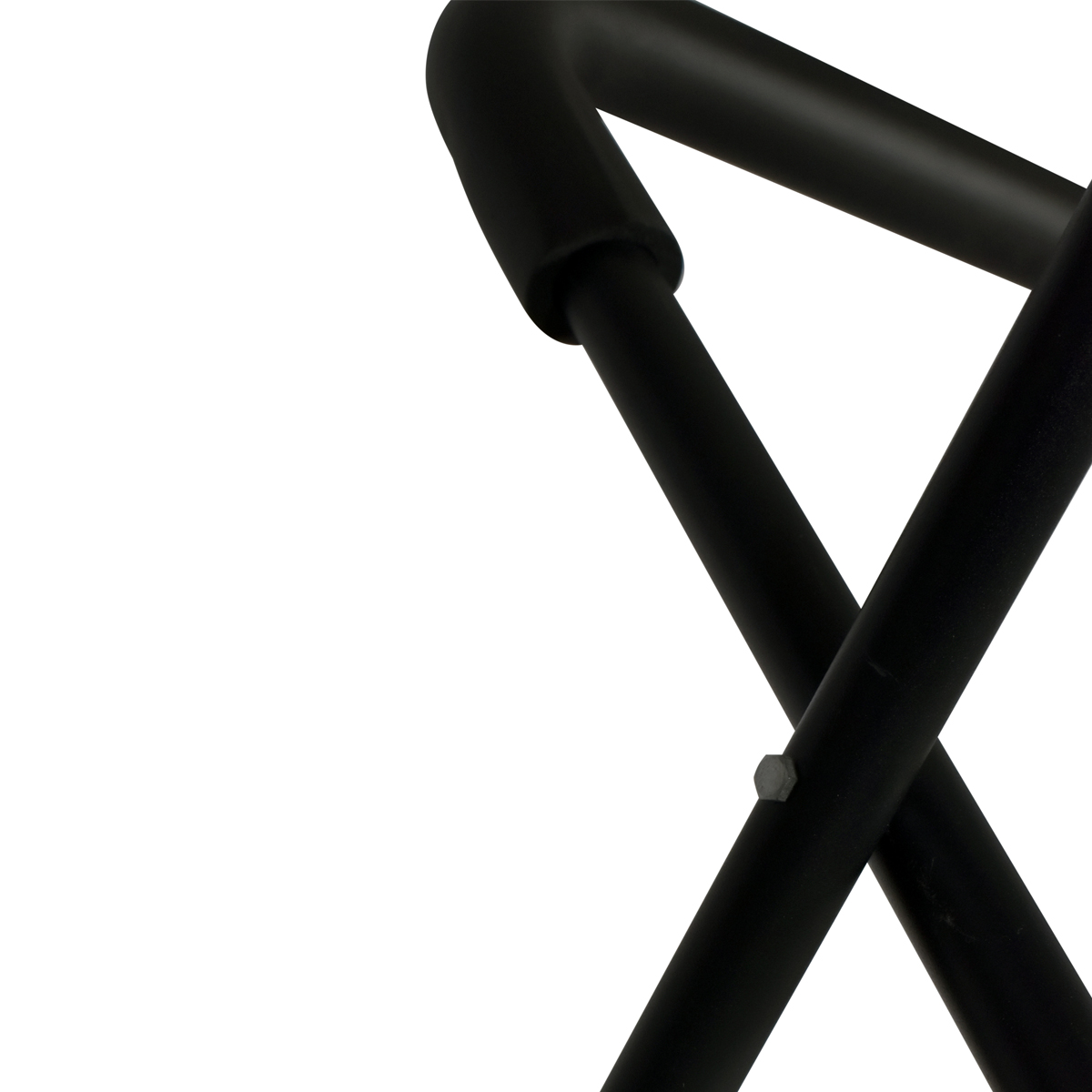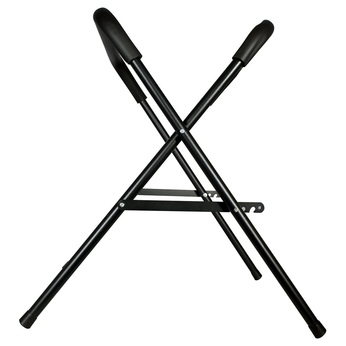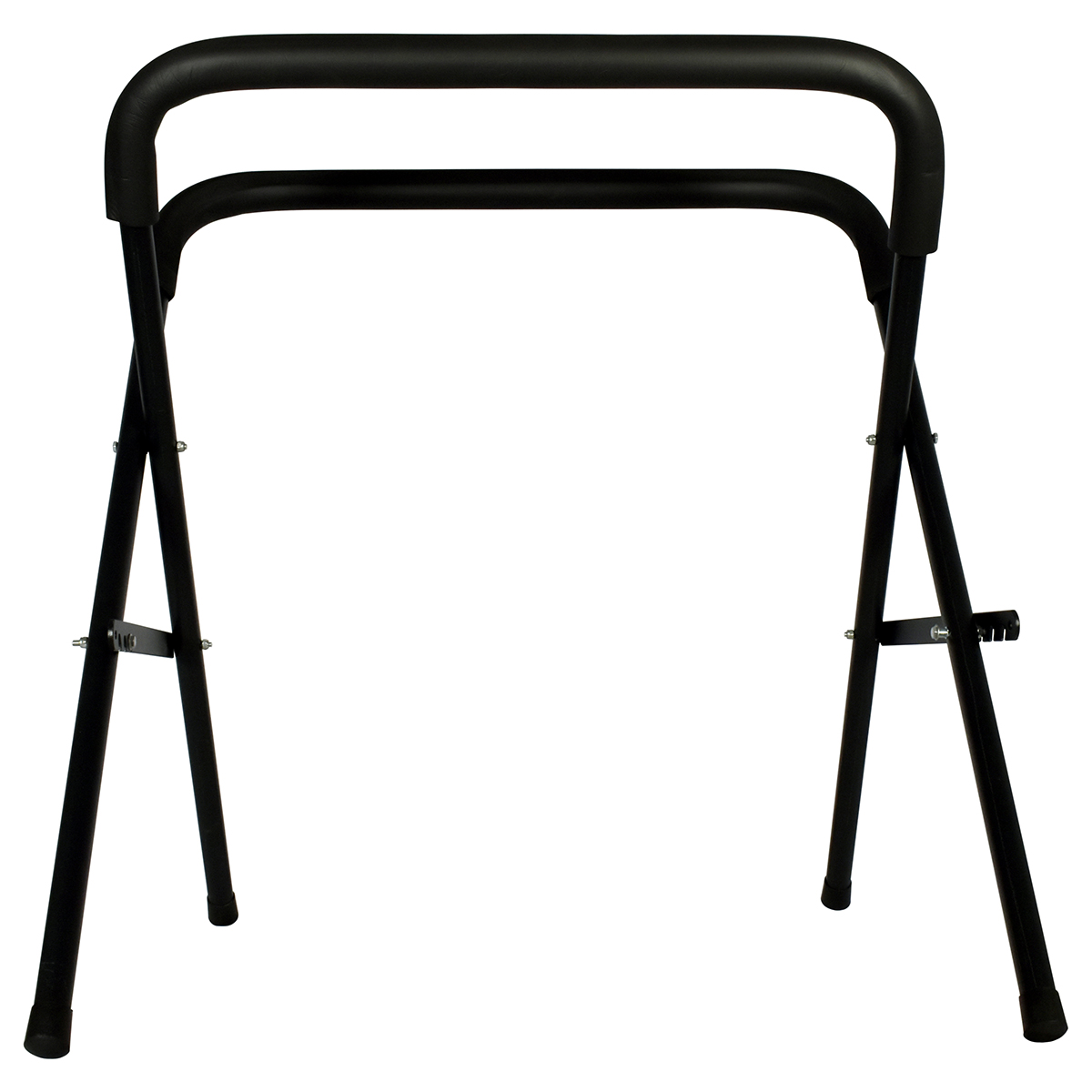Soporte para tambora, tubo de 19 mm, plegable, fabricado con metal, ajuste de 3 niveles, protecciones de espuma para evitar rayar tu tambora, terminado en color negro.