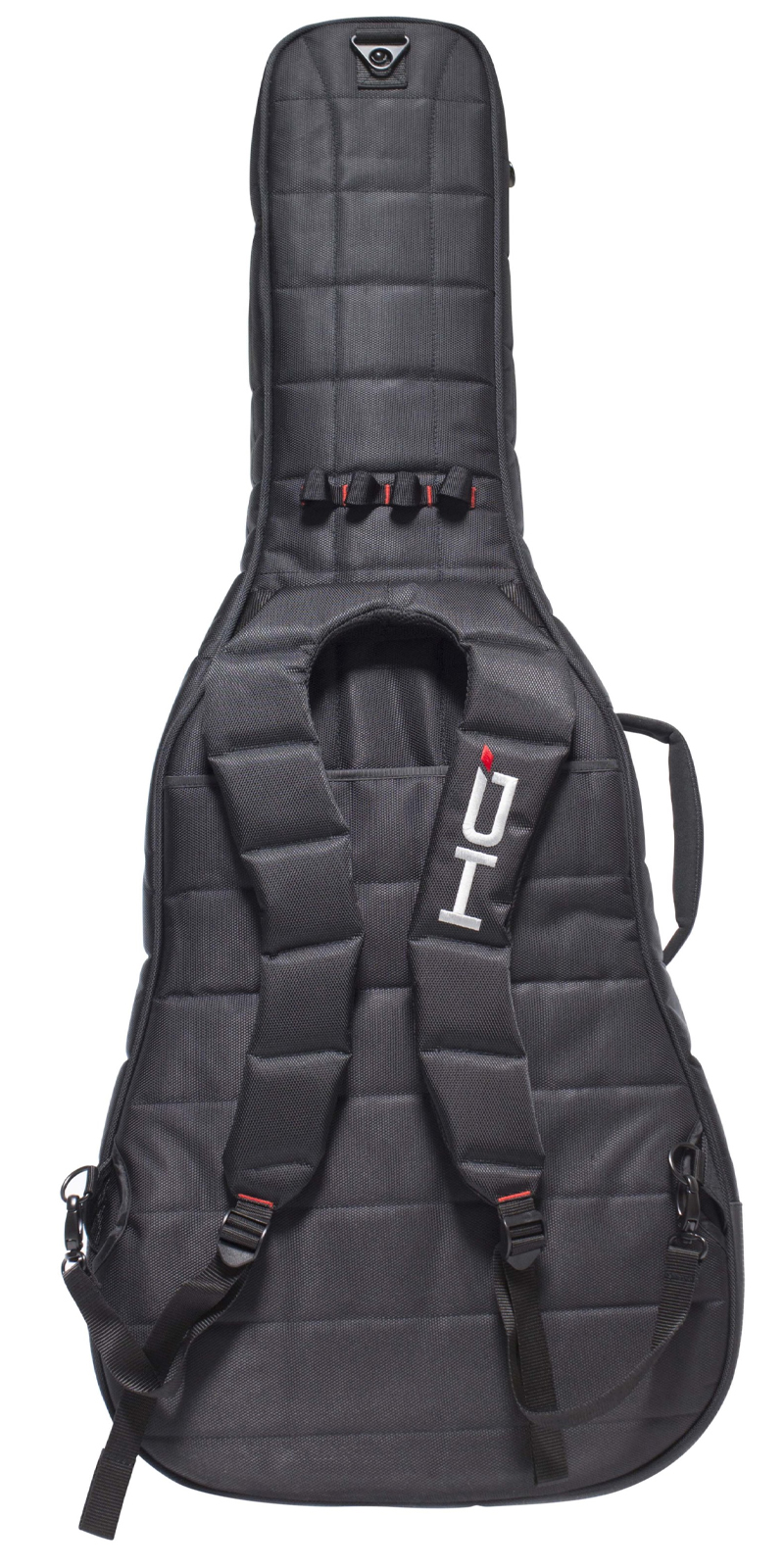 Funda para guitarra clásica, serie ARMOR, fabricada con nylon 1680D resistente al agua, correas traseras acolchadas y retráctiles ajustables con ganchos metálicos, cómodo mango de malla de espuma, suave forro interior de terciopelo con protección adicional cosida para puente y mecánica, grandes bolsillos frontales con varios compartimentos para libros de música, tablets, cables y accesorios, tiradores de cierre DH de aluminio fundido reforzado, acolchado DHFOAM de 35 mm.