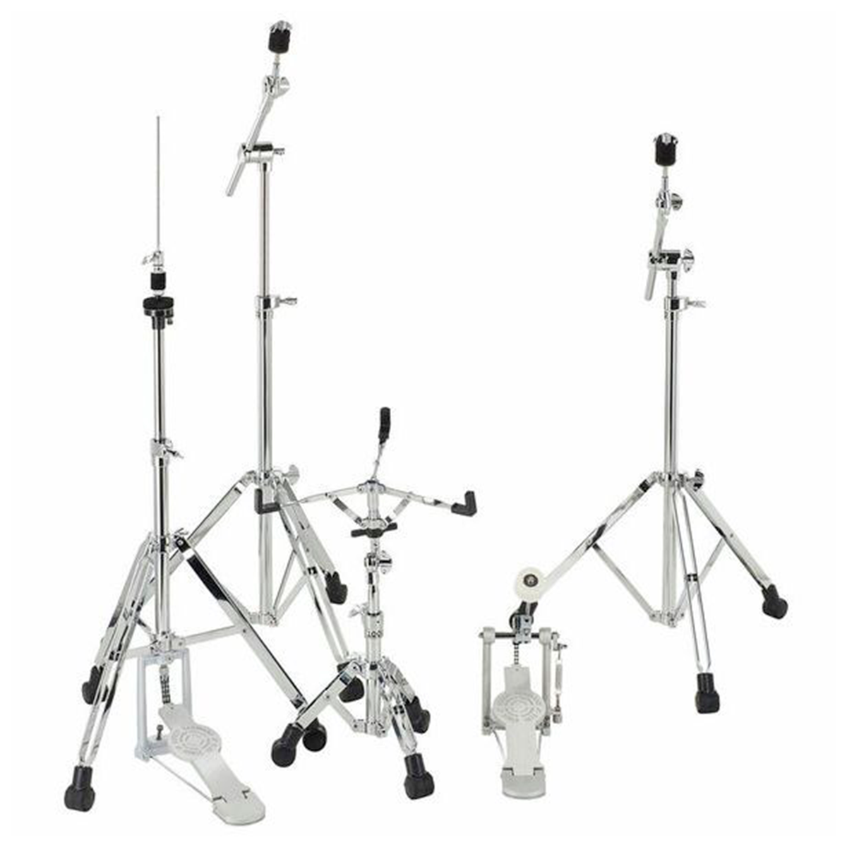 Set de herrajes incluye todo lo que necesitas para un montaje seguro y duradero. Compuesto por dos soportes de jirafa CSB 1000, un soporte de caja SS 1000, un soporte para charles HH 1000 y un pedal individual SP 1000, todos fabricados con materiales de alta calidad para garantizar una excelente estabilidad y rendimiento. Con acabados de cromo resistentes, estos herrajes ofrecen un diseño profesional, ideal para músicos que buscan fiabilidad y facilidad de uso. Perfecto para completar tu kit de batería con equipamiento duradero y de alto rendimiento.